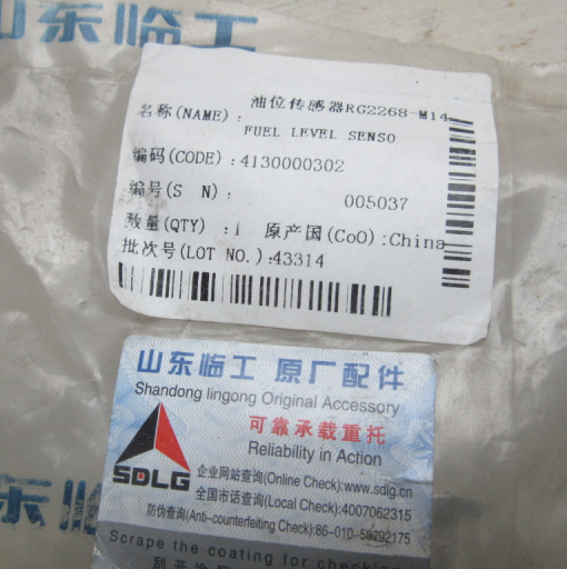 SDLG fuel level sensor High-quality SDLG spare part, applicable to 22 series machinery. OEM Code: 4130000302 Original source: https://supplypartstore.com