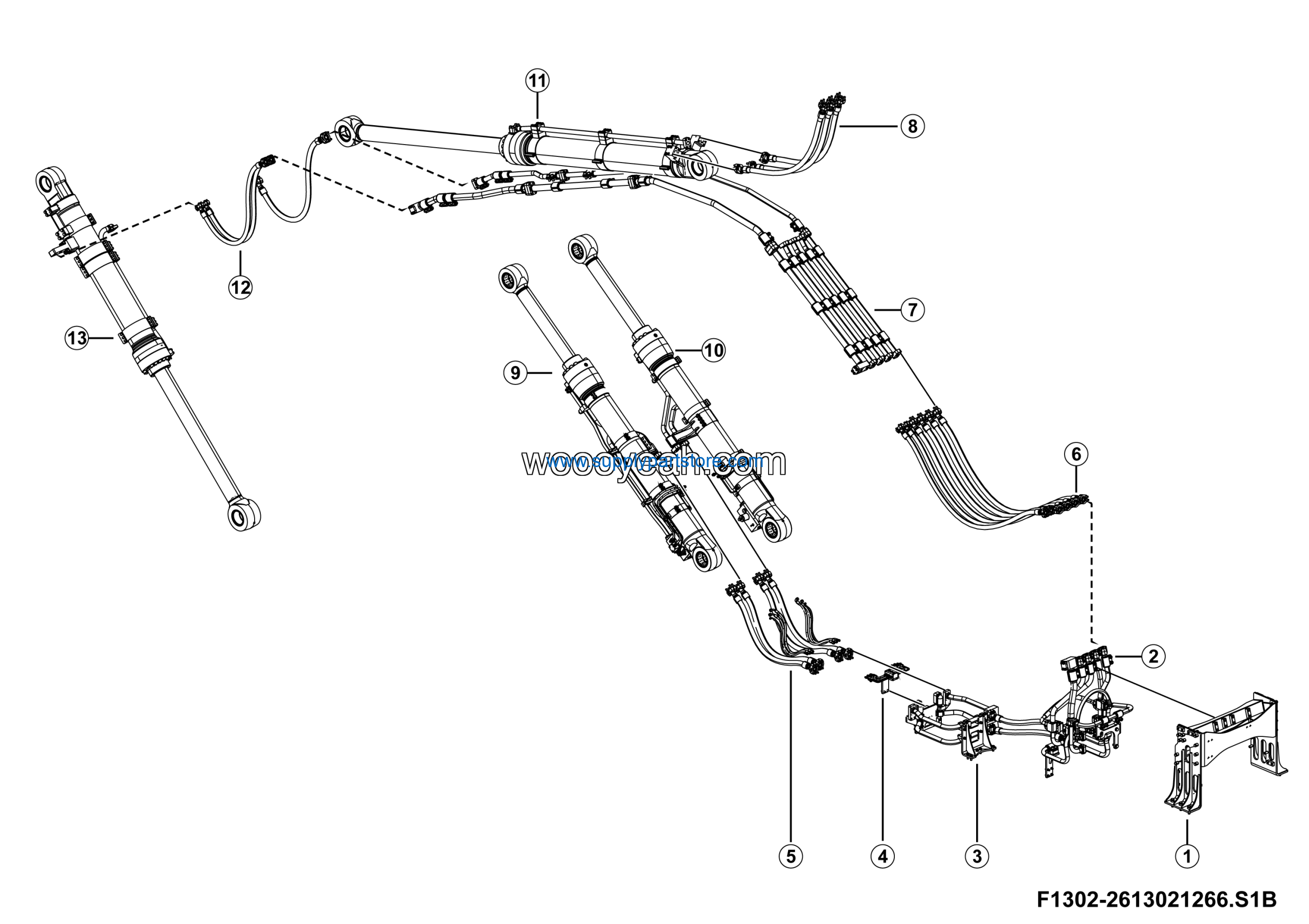 | 13 | Left cylinder hydraulic line | 26130208921 | 1 |